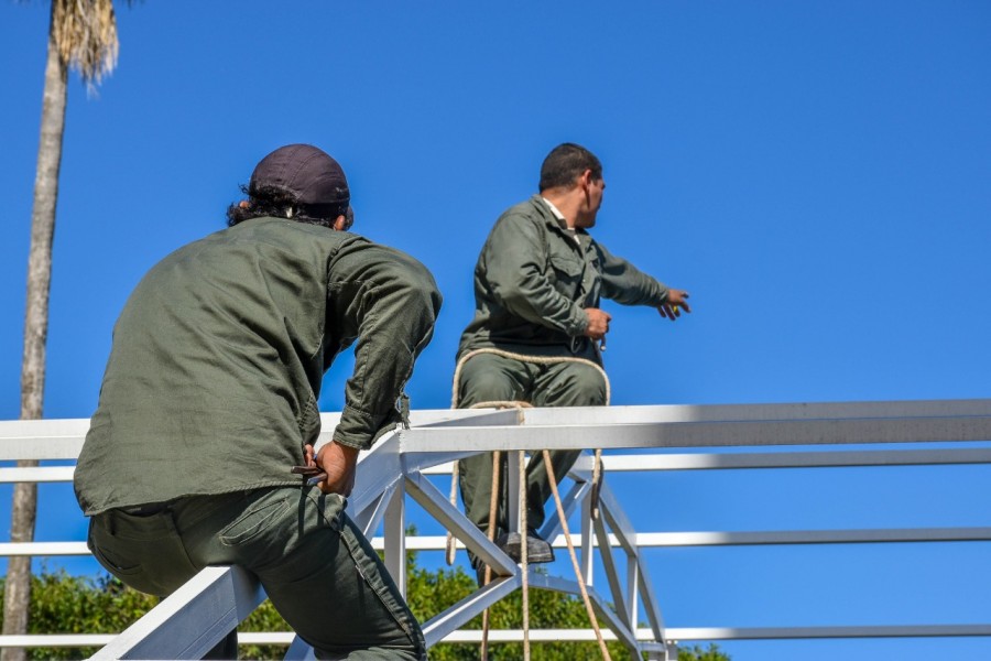 La cubierta se colocará sobre la estructura domo que ya se había realizado para la temporada de verano, la misma es de lona reforzada y con costuras de transparencias en las puertas laterales para que tenga visibilidad el interior, además es desmontable por completo o por partes ya que no se la pondrá en verano.