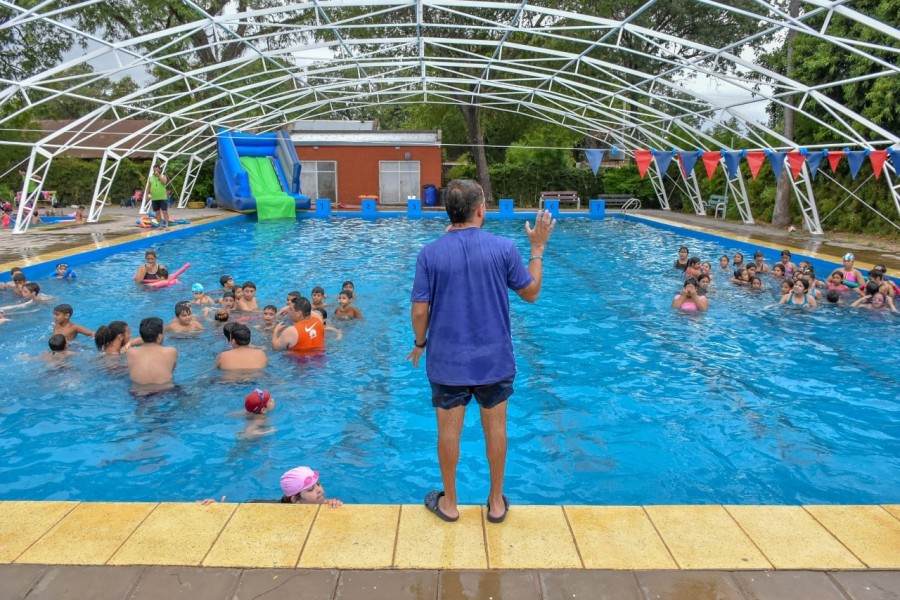 La Colonia de Vacaciones en la Pileta Municipal de Fontana se realiza de martes a viernes en horarios de 8:30 a 11:45 horas y son 100 niños y niñas los que disfrutan de sus actividades recreativas, deportivas y culturales.